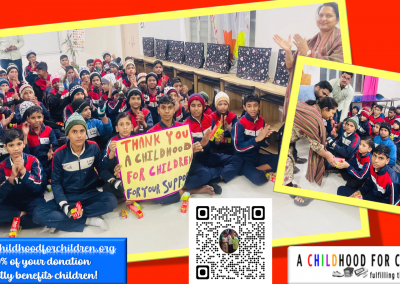 - In India, we provided hygiene, food, & school supplies to children at Aashray, Taabar, Sewa Bal Bharti, & Uma Bal Bharti.